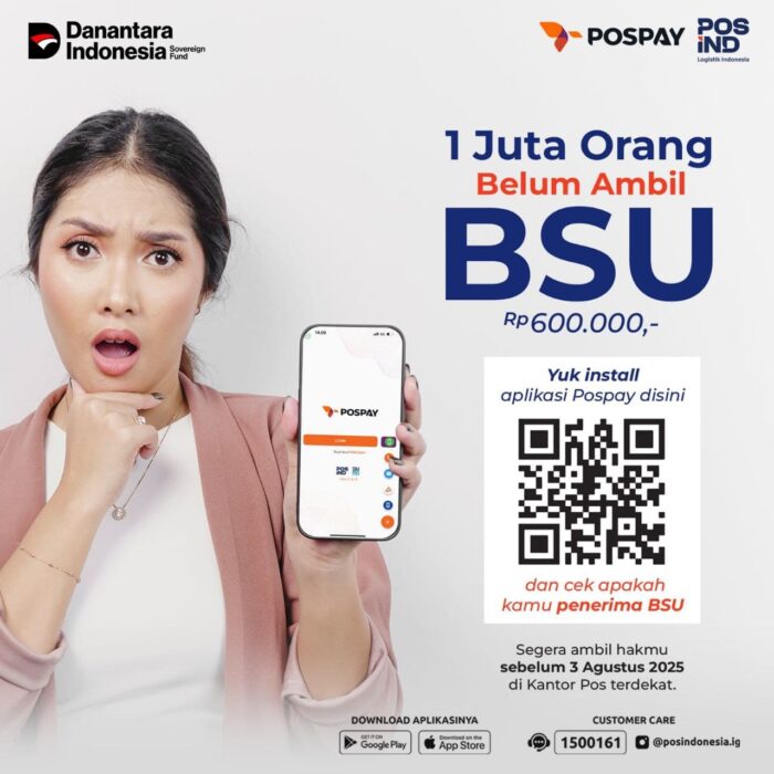 BANDUNG, PastiNews — PT Pos Indonesia (Persero) mengimbau kepada masyarakat penerima Bantuan Subsidi Upah (BSU) segera mengecek statusnya dan mengambil bantuan sebelum tenggat waktu berakhir pada 3 Agustus 2025.