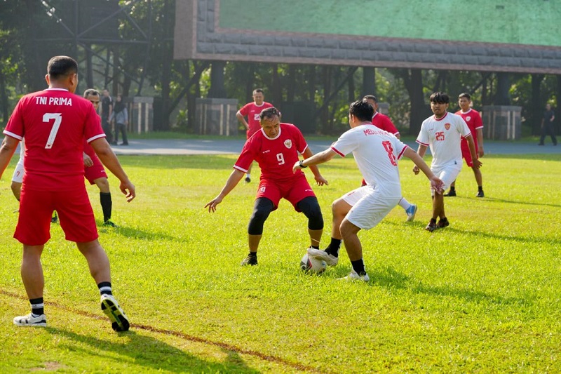 Anggota TNI dan awak media olahraga bersama. PN/Dok