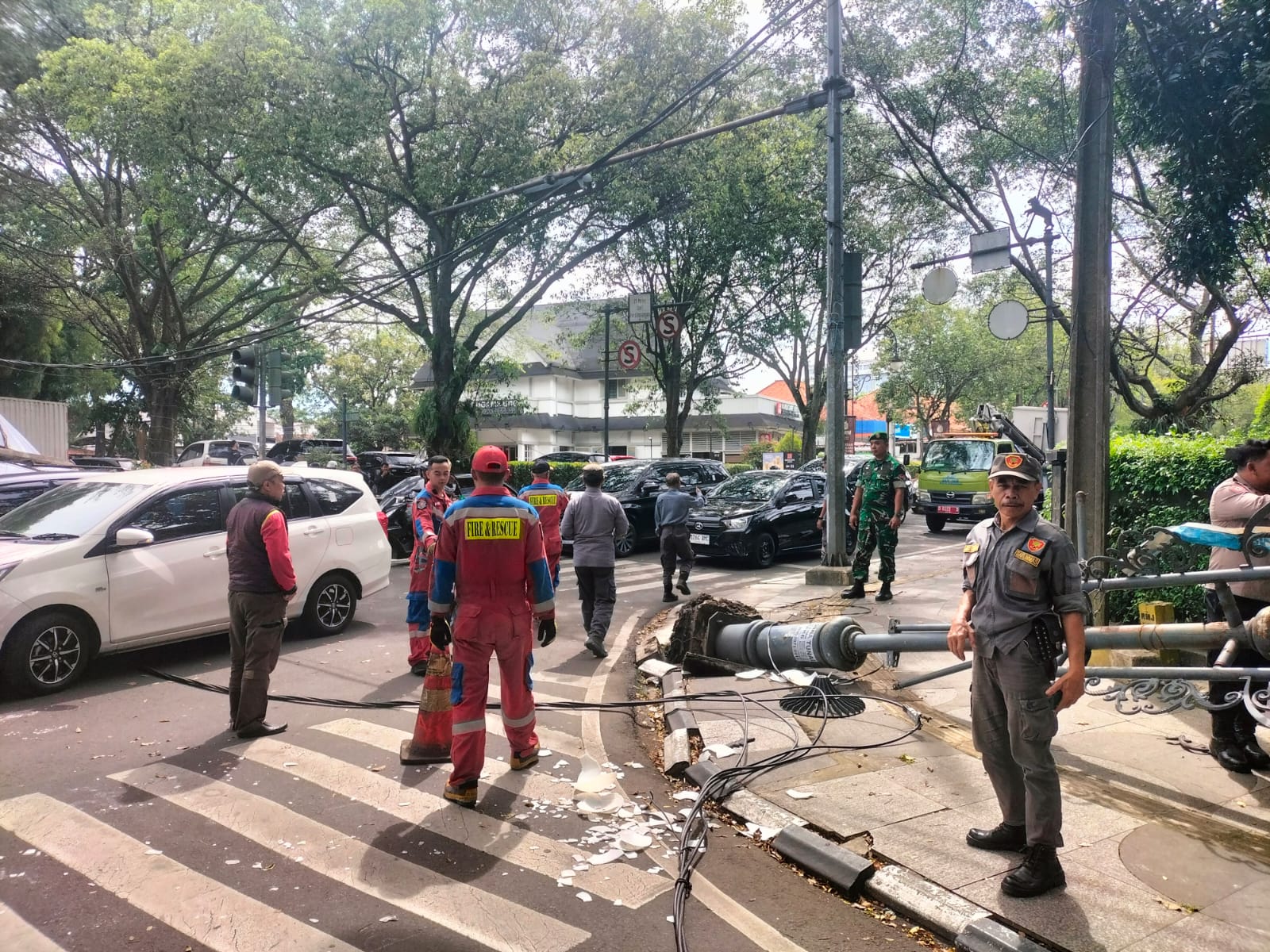 Insiden yang terjadi sekitar pukul 13.00 WIB tersebut sempat menyebabkan arus lalu lintas tersendat. Tiang yang patah di bagian pangkalnya itu jatuh melintang ke jalan, disertai kabel yang menjuntai dan membahayakan pengguna jalan.