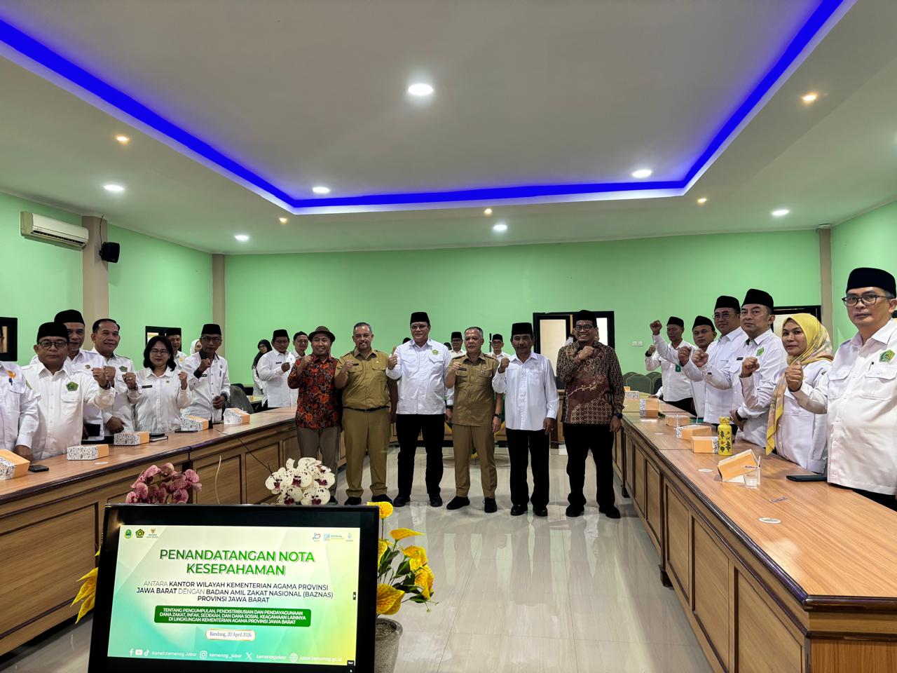 Penandatanganan tersebut dilaksanakan pada Senin, 20 April 2026 bertempat di Aula Kanwil Kemenag Provinsi Jawa Barat, sebagai langkah strategis memperkuat sinergi kelembagaan dalam pengelolaan dana sosial keagamaan yang lebih terstruktur, akuntabel, dan berdampak luas.
